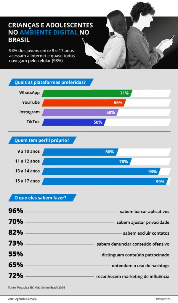 Na esteira das denúncias, a Câmara dos Deputados realizou um amplo debate com parlamentares e especialistas e aprovou novas regras para proteger crianças e adolescentes durante o uso de aplicativos, jogos eletrônicos, redes sociais e programas de computador.