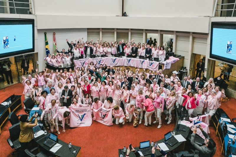 Voluntárias das redes femininas de todo o estado acompanharam a votação no Plenário Deputado Osni Régis e comemoraram a aprovação do projeto, cantando o Hino da Rede Feminina de Combate ao Câncer, inspirado na canção francesa La Vie en Rose.