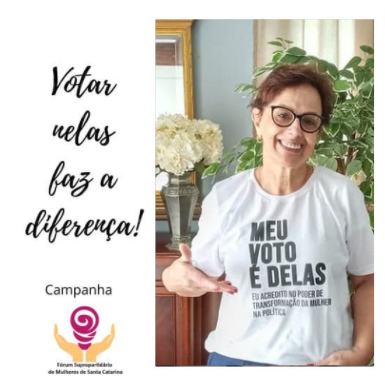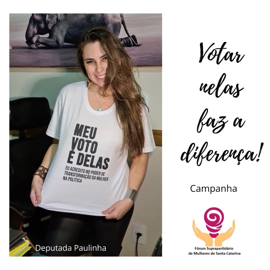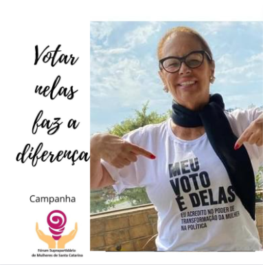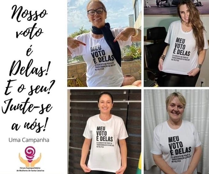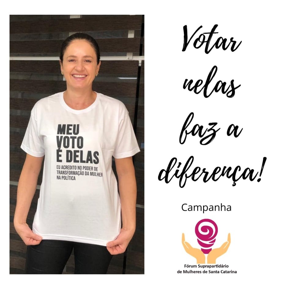 A campanha “MEU VOTO É DELAS” teve como objetivo incentivar a participação das mulheres na política e aumentar a representatividade feminina no executivo e legislativo municipal de 2020 e foi realizada em parceria com o Fórum Suprapartidário de Mulheres de Santa Catarina.