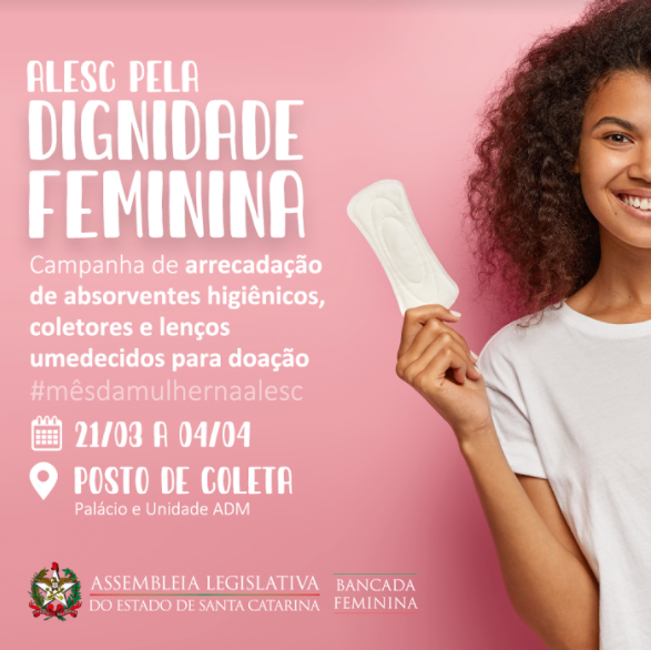 Campanha de arrecadação de absorventes higiênicos, coletores e lenços umedecidos para doação