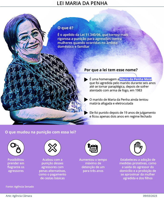 Em vigor há 18 anos, a Lei Maria da Penha estabelece medidas de proteção para as mulheres em situação de violência doméstica e prevê a criação de juizados especiais para esses crimes.