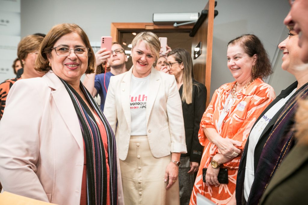 “São pessoas que lutam para construir um estado de justiça e democrático. Aqui não há convidadas para falar mal das feministas, não estão aqui para divagar sobre preconceitos, nem para dividir a sociedade ou para hierarquizar. Aqui as mulheres não são suportes, não estão ao lado, mas na linha de frente dos enfrentamentos que precisamos fazer”, afirmou Carminatti, que destacou a luta contra a violência política e a desigualdade salarial.