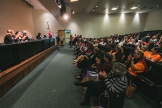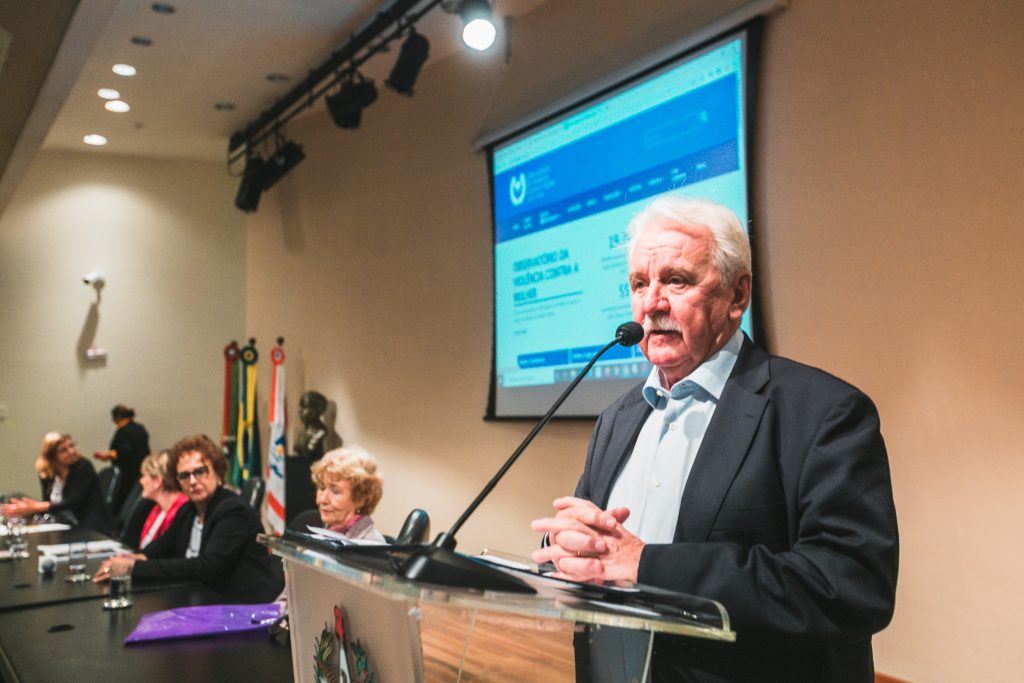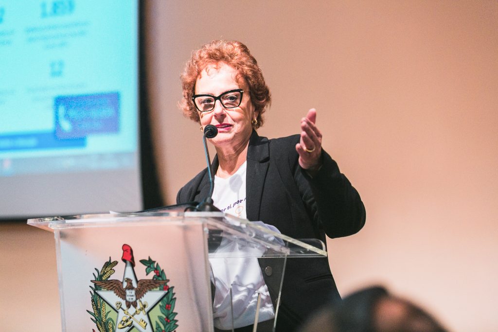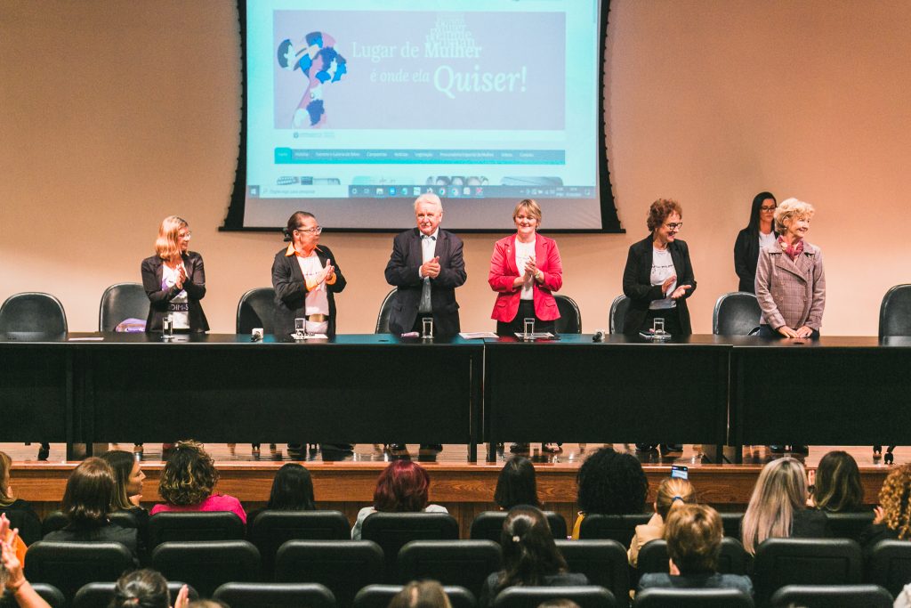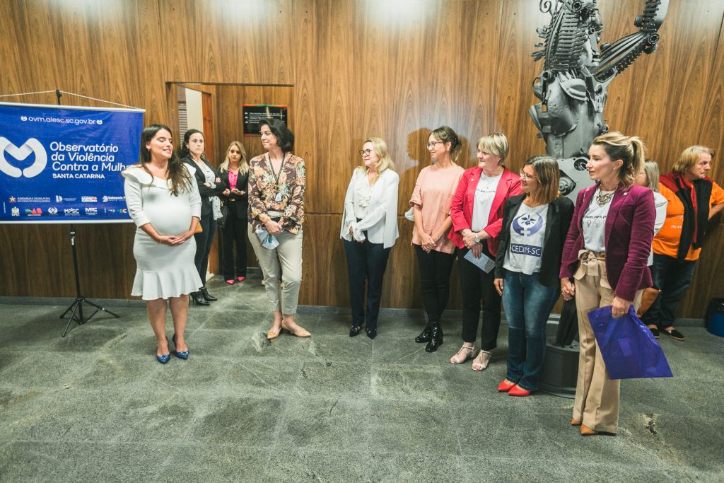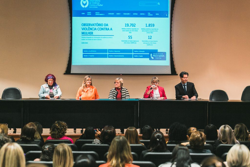O evento aconteceu no auditório Antonieta de Barros e contou com a presença de representantes de conselhos municipais, do Conselho Estadual dos Direitos da Mulher, ocupantes de cargos eletivos e representantes do comitê gestor do Observatório da Violência contra a Mulher de Santa Catarina, além de convidados especiais para a mesa de experiências.
