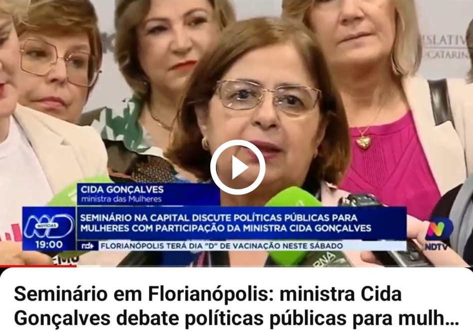 Seminário em Florianópolis: ministra Cida Gonçalves debate políticas públicas para mulheres – Por NDTV Clique aqui e assista ao vídeo