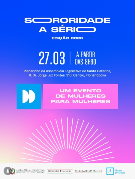 A Assembleia Legislativa de Santa Catarina (ALESC), por meio da Bancada Feminina e da Secretaria da Mulher, promove no dia 27 de março de 2026, a partir das 8h30, o evento “Sororidade a Sério”.