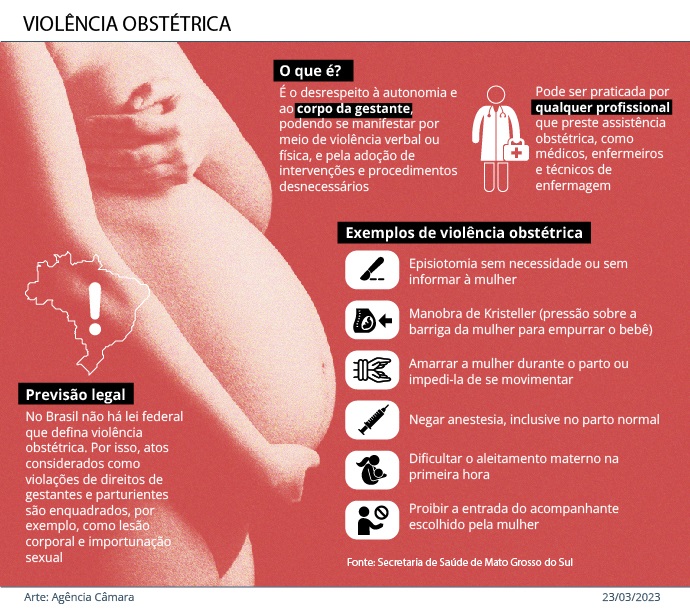 A violência obstétrica, dizem as deputadas, pode ocorrer durante a gestação, o parto e o pós-parto. “É o desrespeito à mulher, à sua autonomia, ao seu corpo e aos seus processos reprodutivos, podendo manifestar-se por meio de violência verbal, física ou sexual e pela adoção de intervenções e procedimentos desnecessários ou sem evidências científicas”, explicam.