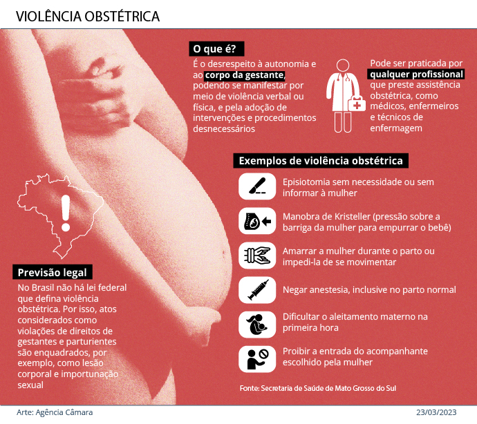 A violência obstétrica pode ocorrer durante a gestação, o parto e o pós-parto. Desde 1996, a Organização Mundial da Saúde (OMS) traz recomendações sobre o que deve e o que não deve ser feito no processo do parto.
